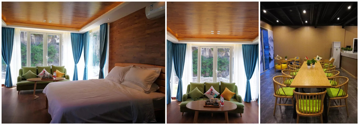 6间观澜河景大床房、6间听涛河景大床房,6间独栋忘忧野奢河景大床房,共计18间房组成。