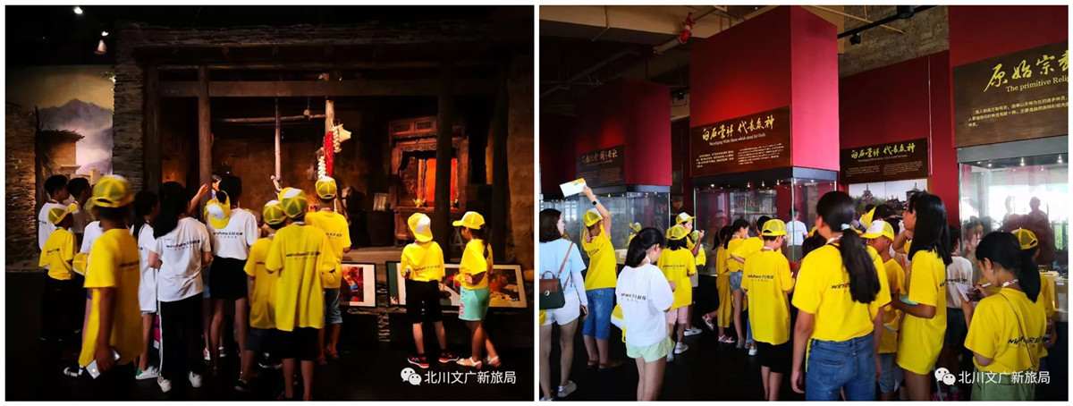 来到北川羌族民俗博物馆,小朋友们不仅看到了馆内展示的文物、民俗实物,还能通过博物馆以声光电等高科技手段,了解到羌族生产生活的活态历史和自然场景。