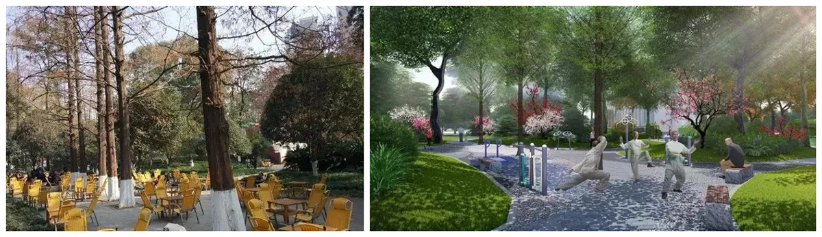 除了分区改造提升功能,新改造的区域还将融入海绵城市的理念,打造绿色会“呼吸”的生态系统;保护原有乔木的基础上,营造多层次的四季景观,提升公园颜值!改造也将于近期开工。