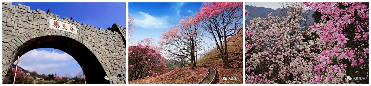 人间四月,天地花海药王谷引进了60多种中医材观赏花卉,使药王谷从每年3月至11月都鲜花盛开。特别是每年三月底辛夷花开之时,百年大树,满树鲜花,漫山遍野,其壮观令人难忘。