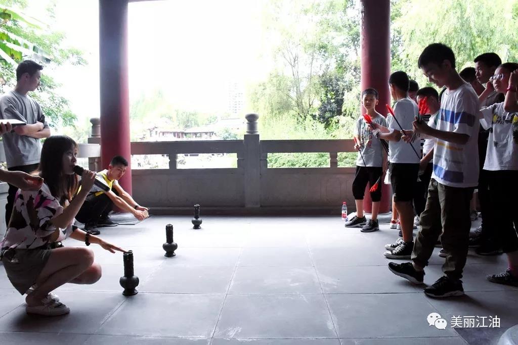 活动最后,在工作人员带领下,众学子一起体验了投壶游戏的乐趣。“击筑落高月,投壶破愁颜。”投壶作为中国传统礼仪和古代士大夫们宴饮时的游乐项目深受李白的喜爱,游戏环节让学子们在潜移默化中学习了传统风俗,传承了中国优秀的民族文化,为此次研学活动划上了圆满的句。