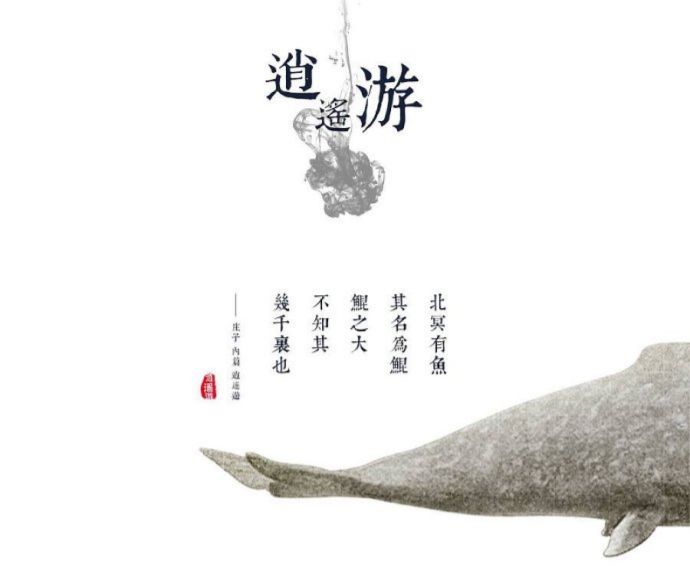 “北冥有鱼,其名为鲲。鲲之大,不知其几千里也。化而为鸟,其名为鹏。鹏之背,不知其几千里也。怒而飞,其翼若垂天之云。”