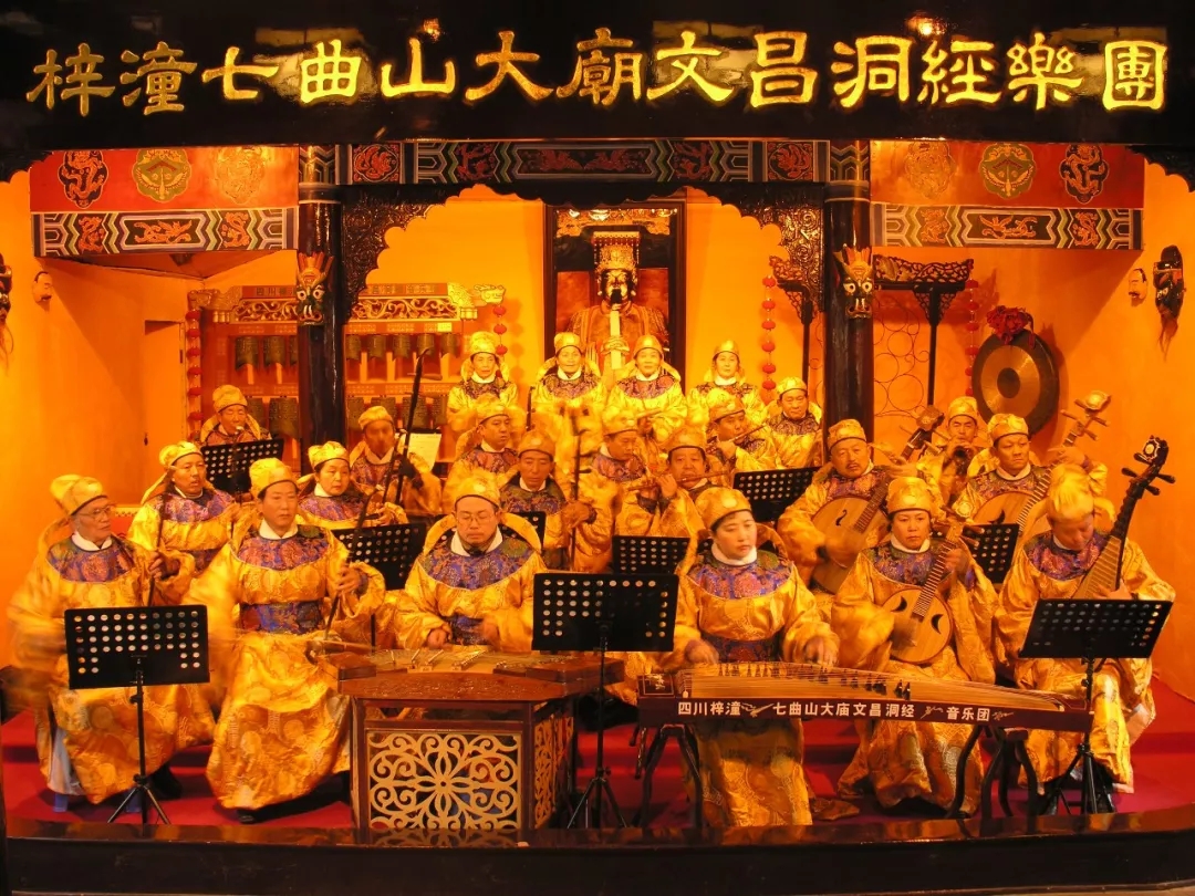 梓潼七曲山大庙既是文昌宫观之祖庭,又是文昌文化的发祥地。梓潼文昌洞经音乐源于古蜀人的道教祭祀音乐,是谈演《文昌大洞仙经》时的伴奏音乐。文昌洞经古乐音韵高雅、风格朴素、品种繁多,具有一种高雅、淳厚的格调,它将汉族宗教音乐、古典音乐、民间音乐熔于一炉,在乐曲、乐器、演奏技艺,成为宝贵的民间艺术瑰宝。