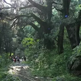 漫步其间,满目绿意,犹如世外之所,静谧秀美,古木寂寂,林风微拂,长廊中的一切似未舒醒的慵懒。人在画中走,也成为了画的一部分。林中一夕,世间却已千年过。