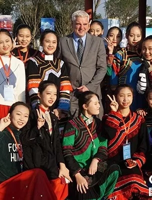 与国际友人合影