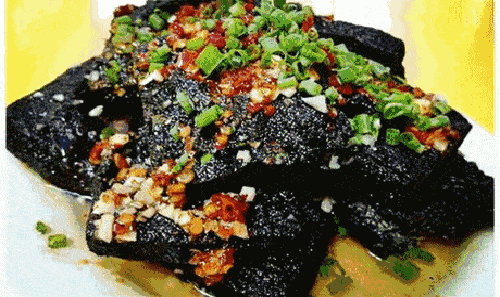 长沙特产臭干子:色墨黑,外焦里嫩,鲜而香辣; 焦脆而不糊、细嫩而不腻,初闻臭气扑鼻,细嗅浓香诱人!