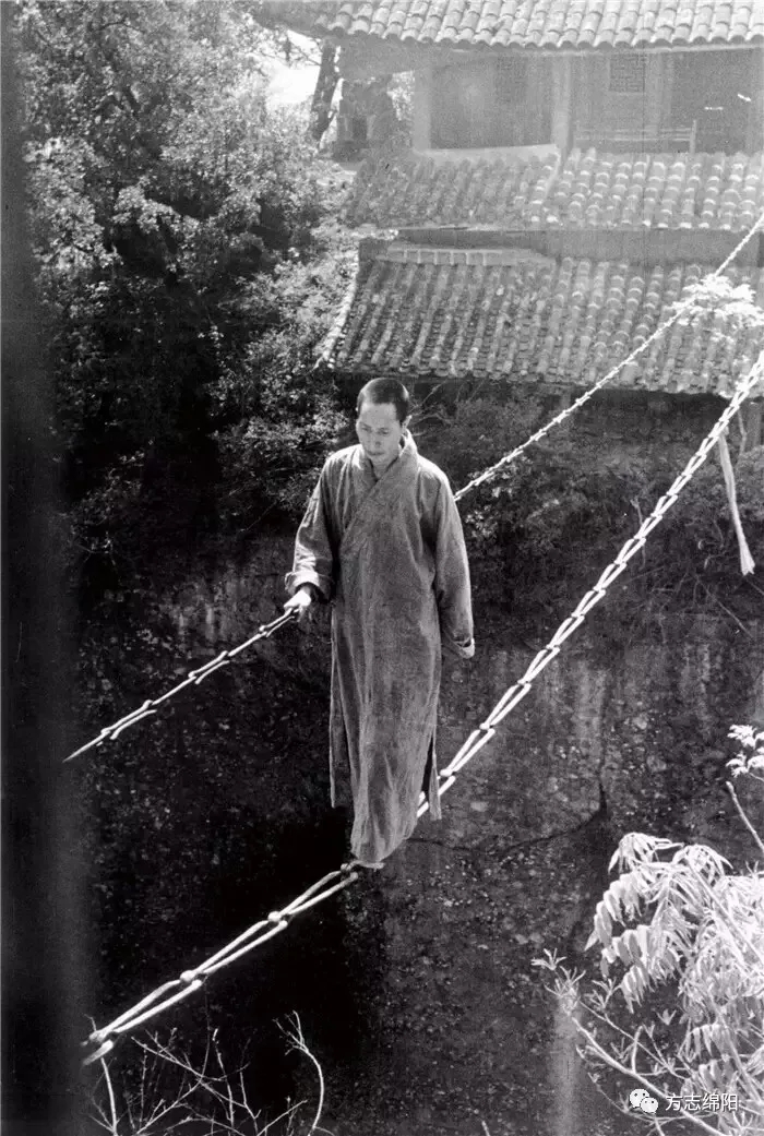 窦圌山僧人飞渡老照片