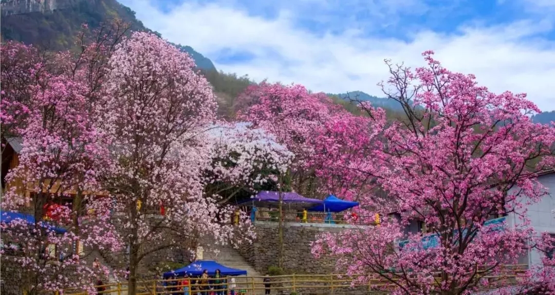蔚为壮观的万亩辛夷花海仿佛人间仙境,遮天蔽日的辛夷花看得你流连忘返,