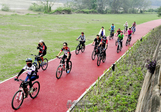 这是一组健康绿道建设的成绩单:第一期从普明立交桥沿安昌河左岸至桃园路口,全长约10公里,2012年底建成投入使用。第二期从桃园路口经三江半岛至东方红大桥,全长约7公里,2013年8月建成投入使用。第三期从南山大桥经涪滨路至三江闸坝,全长约10公里,工程立项投资1482万元,已在2015年2月建成投用。为尽早让市民共享这一民生工程带来的改变,住建部门及施工单位在有限的施工期内,克服困难,加大施工力度,基本上保证了一年建成一条的速度。如今,城市绿道网络已初见雏形。 在绿道建设中,我市住建部门集思广益,在修建过程中充分考虑到绿道的安全、美观和实用。对通行道路采用红色透水混凝土浇筑,对休闲区采用绿色透水混凝土浇筑,通过车行道路口采用警示彩色沥青浇筑,较好地保持了美观和路面的透水性。对部分开阔地、草坪、河滩地等,增加了绿道生态建设,在具备条件的路段和开阔地种植景观树、草坪,提升了美观效果。