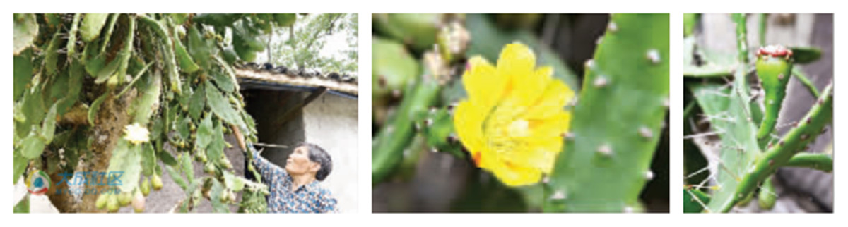 周棉秀说,仙人掌种下去后也没怎么浇灌,大概种了十年后开始开花结果,接下来,每年2月份开始持续到10月份,掌片上长出果子,果子上又长出花,年复一年,越长越大。