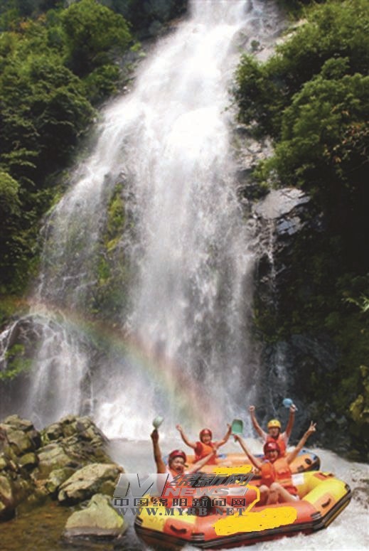 接二连三的激流将橡皮艇忽而高高抛起,忽而重重跌落,有一种失重的快感,让人体验到漂流的无限刺激。大家的热情越来越高,现场气氛不断升温。激流险滩过后,悠闲地坐在橡皮艇上欣赏峡谷两岸风光,又是另一番体验。天然的漂流河道在绿色山谷间盘旋,美不胜收。