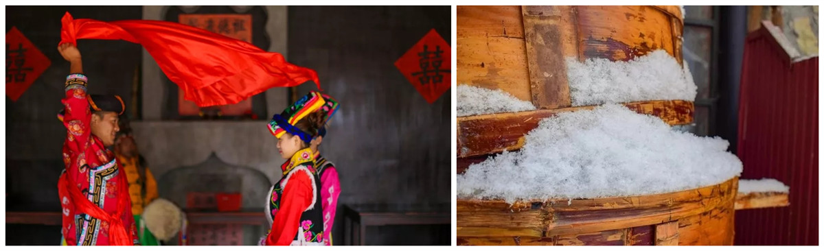如果你去后山,这场羌族婚礼一定要参加。白雪红袍,雪中婚礼,浪漫到不行~上菜,您的新鲜白雪已经上线,请放心食用。