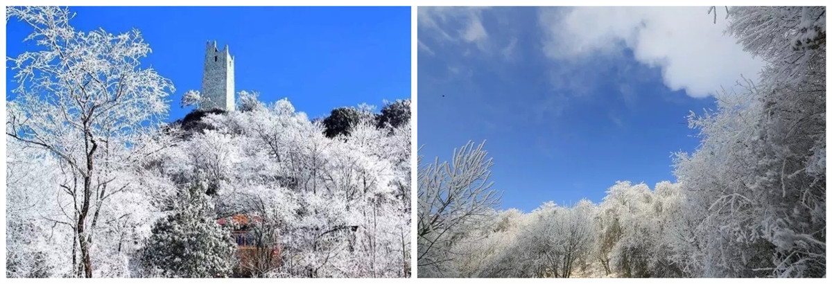九皇山的雪虽不似北国风光,有千里冰封,万里雪飘的粗犷,但它更似南国佳人,温婉动人,轻柔细腻。“忽如一夜春风来,千树万树梨花开。”行走在山间,北风吹过,漫天的冰花蹁跹起舞,好似人间仙境,如梦似幻。