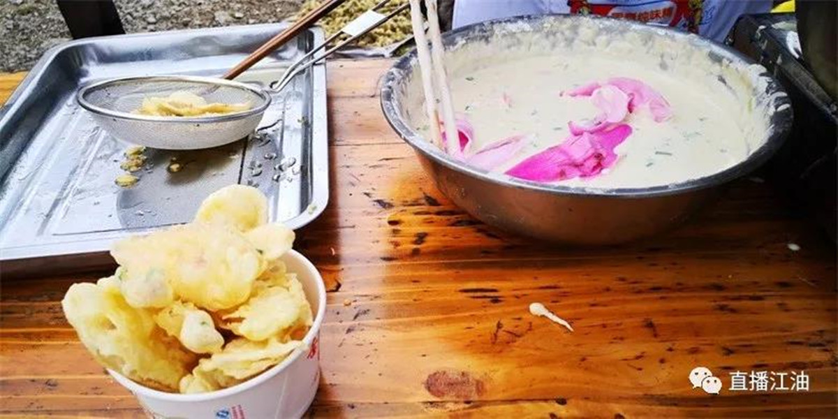 辛夷花饼是吴家后上村民们自己发明的一种小吃,将花瓣裹上调料,放进锅里油炸一会捞起,就能直接食用,酥脆的口感加上花儿清香,非常的可口。