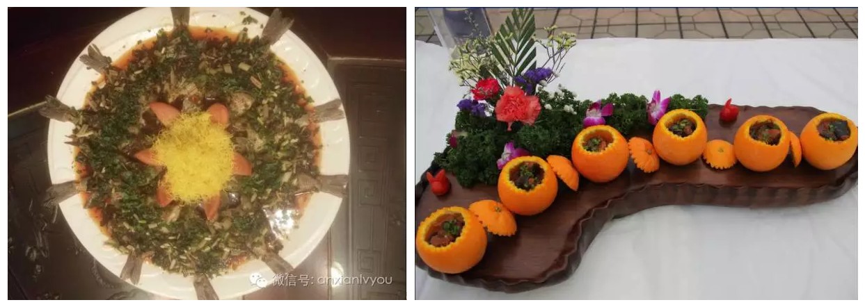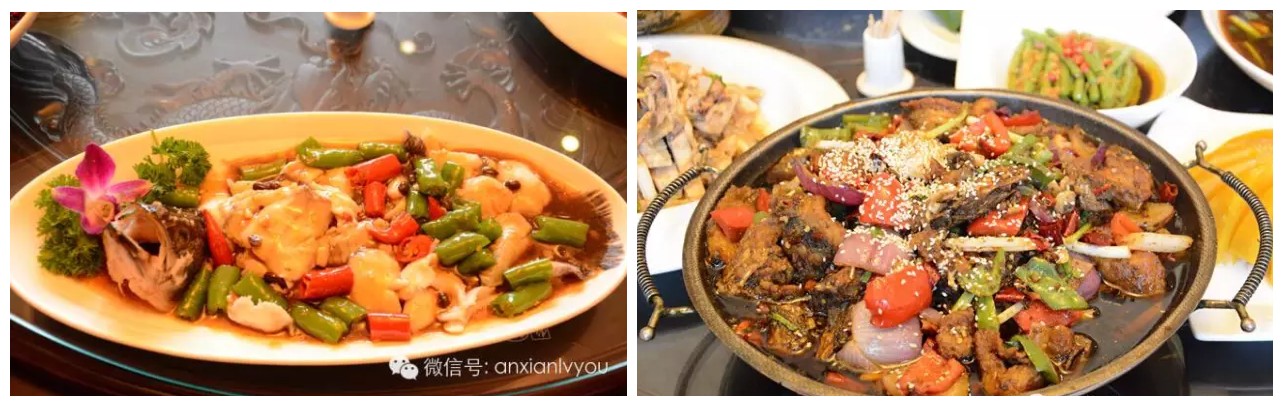 豪华五星级标配巴蜀鱼都,是集旅游观光、宴会酒席、会议接待、休闲娱乐和鱼文化展示等为一体的休闲场所。地址位于辽宁大道旁雍峙村段时新水产公司内(有路牌标示),距安州花荄仅三公里,距绵阳城区20公里,距成绵广高速公路12公里,地势平坦,交通便利。巴蜀鱼都先后荣获中国乡村旅游金牌农家乐,中国乡村旅游致富带头人,四川省休闲农庄,四星级农家乐,绵阳魅力农家乐,四川省地方民间好味道等多项品牌称号。下图为一楼入门和壁画走廊。巴蜀鱼都占地60余亩,采用了具有明清古典宫廷文化特色的建筑风格,点缀有鱼文化涵义的名人诗画、富有情调的长廊、参天大树、翠绿草坪、宽阔广场、林间小道、潺潺小溪、风情小桥,让游人在细语漫步间汲取渔文化知识,享受美景,消除繁忙工作和生活中的疲劳。茶园有17间雅间,大厅采用的是排风扇和水循环环保设备,四周花草围绕,沁人心脾,水帘带动着空气流动,不时传来阵阵清凉,是个老少皆宜的休闲场所。超五星级的美食如果你特别爱吃鱼,推荐他们家的自助火锅鱼系列,价格是每个人40/70/100元不等,至少每个价格的自助火锅都有3种及以上的鱼品种,花鲢、黔鱼、鲟鱼、青鱼、鸭嘴鲟、太阳鱼...吃到你扶着墙出门,绝对实惠!虎皮鲈鱼:这道菜做法是由鲈鱼鱼背改刀烹制而成,因表面像虎皮而得名。准妈妈和产生妇女吃鲈鱼是一种既补身、又不会造成营养过剩而导致肥胖的营养食物;食烹黔鱼:这道菜吃起来有干锅和烤鱼结合的口感,麻辣味十足,加上各种配料的搭配,一吃就爱上了这个味。青花椒中华鲟:鲟鱼刺少肉鲜,青花椒的麻味直窜鱼肉里面,很提味。并且鲟鱼全身都是宝,鲟鱼的鱼筋具有健脑作用,胶原蛋白含量高,能补充人体所需,还有美容的功效。麻辣鸭嘴鲟:此道菜也可谓是难得一见的佳肴,因鱼嘴外观酷似鸭嘴而因此得名,肉质细嫩,味道鲜美,吻部的软骨嚼起来嘎嘣脆,能在鱼的身上吃到软骨还是头一次体验。酸辣鲈鱼丝:鲈鱼去骨去皮取肉,放作料、淀粉抓匀,鱼丝放开水焯熟,锅热放油放鱼丝双椒丝滑炒,无骨无刺,口感嫩滑酸爽。娃娃鱼煲汤:娃娃鱼的口感吃起来特别的Q,嚼起来又弹又胶,感觉满嘴的胶原蛋白在口腔滑动。娃娃鱼汤味道浓香,鱼肉鲜美,营养丰富,易于消化吸收,女士吃了美容养颜,老人吃了延年益寿。不得不吃的安州十大名菜橙香苏式烧大鲵:安州首届厨艺大赛获奖菜品,安州十大名菜,以生态绿色、健康饮食为主题。吃得不止是美食,还有健康。藿香太阳鱼:安州首届厨艺大赛获奖菜品,安州十大名菜。值得一提的是,太阳鱼之所以得此名不是因为它长得像太阳,而是它是在有太阳的时候才出来,并且在水缸里阳光的照射下鱼鳞五彩斑斓。而且这种鱼刺少,肉嫩,味鲜,鱼肉咬下去肉质还有点脆的感觉,加上藿香的清香味,味道不摆了。地址:绵阳市安州辽宁大道旁 巴蜀鱼都(有路牌标示)电话详询: 0816-4361666 0816-4362666