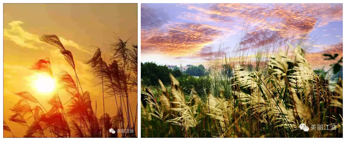 一株株芦苇花单看如淑女,恬静、淡雅、飘逸;一片片如飞雪,浩荡、纯洁、轻盈。芦花在落日的微光中闪闪烁烁,清风徐来,芦苇摇曳,和着炊烟缕缕……