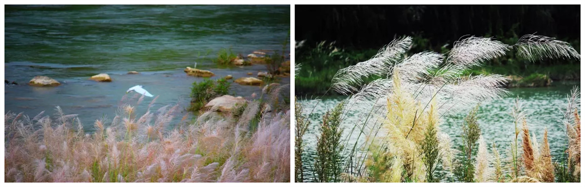 斜阳西照时,河边霞光辉映。静静地坐在河边草地上,欣赏着无边的、雪白的芦苇花,看白鹭时飞时栖……仿佛忘记了时间和地点,也忘怀了自己。恍惚中,只觉得自己静坐在一幅画里,或者一首诗歌的意境里。